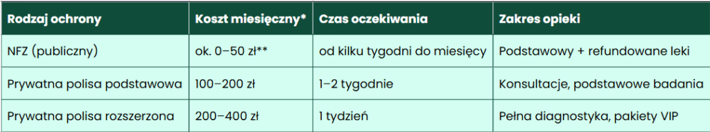 4. Porównanie kosztów: NFZ vs. prywatna polisa